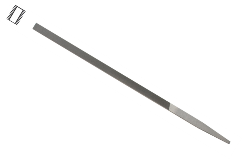 These files are parallel in width and tapered in thickness to make possible perfectly flat filing. Double cut top and bottom - Both edges are safe. 15/64" wide x 1/8" thick.